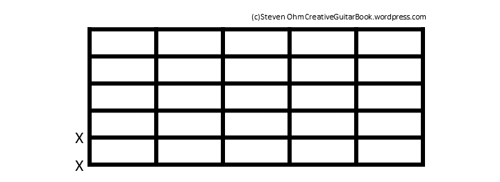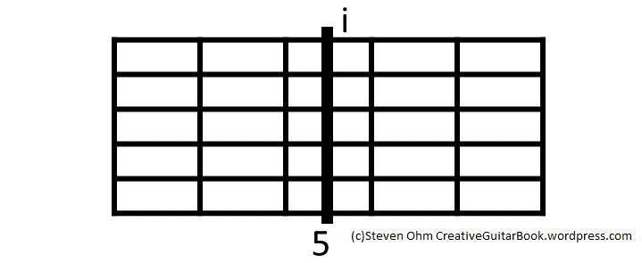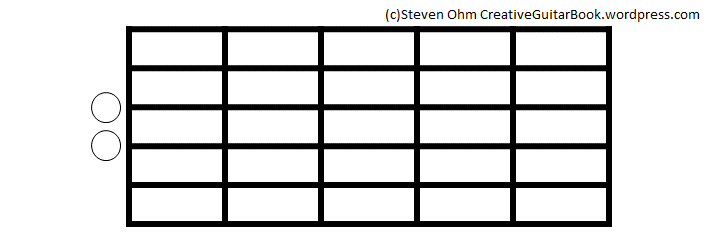 Ex3) To show an open string, a dot(circle) would be drawn next to the string on the left side of the diagram. Notice there are no fret numbers.