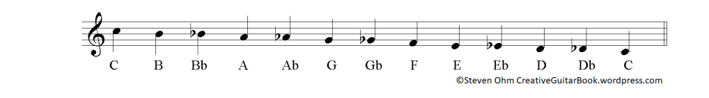 C – C#(Db) – D – D#(Eb) – E – F – F#(Gb) – G – G#(Ab) – A – A#(Bb) – B – C